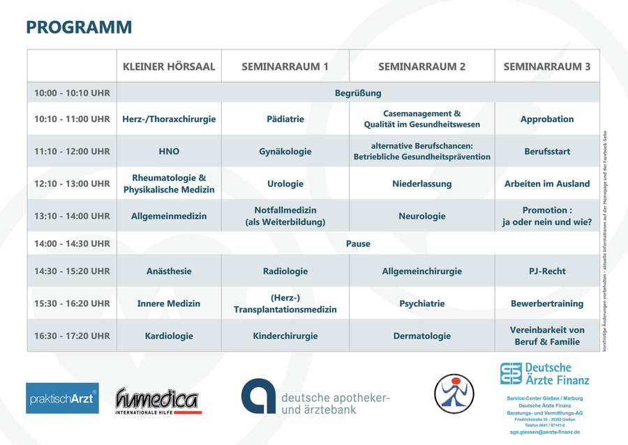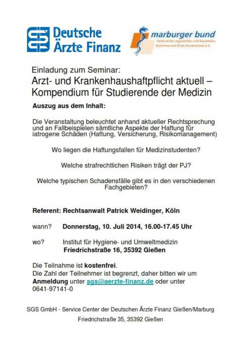 Wir möchten gerne auf die obenstehende Veranstaltung unseres Partners, der Deutschen Ärzte Finanz hinweisen. Alle wichtigen Informationen findet ihr im Flyer.