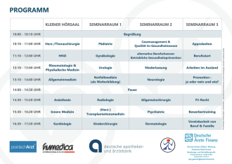 Wir möchten euch in diesem Jahr wieder die Möglichkeit bieten, 24 spannende Vorträge von Ärzten verschiedenster Fachrichtungen zu besuchen und ihnen in der "Referenten-Lounge" persönlich Fragen zu stellen.